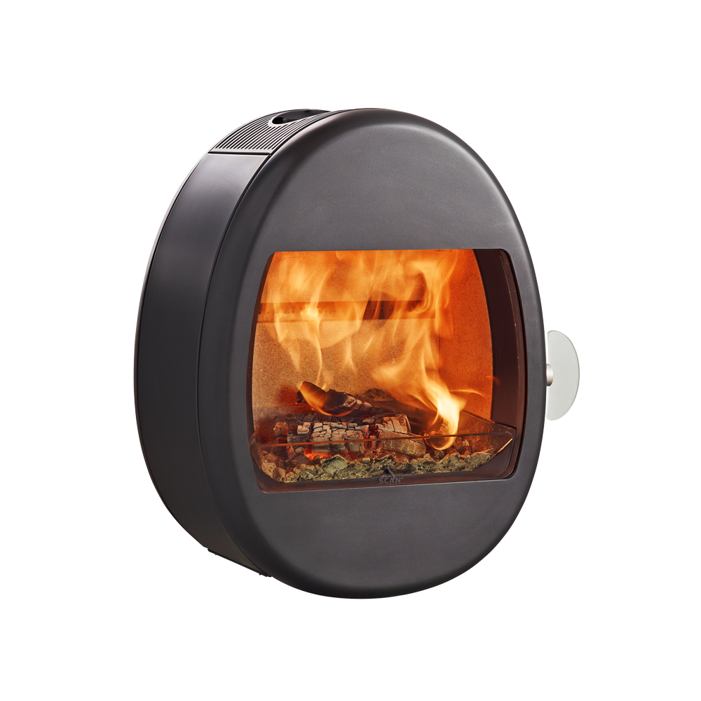 Scan 66-1 ist das Wandmodell der Serie. Mit dem diskreten Wandbeschlag sieht es aus, als ob der Ofen an der Wand schwebt.