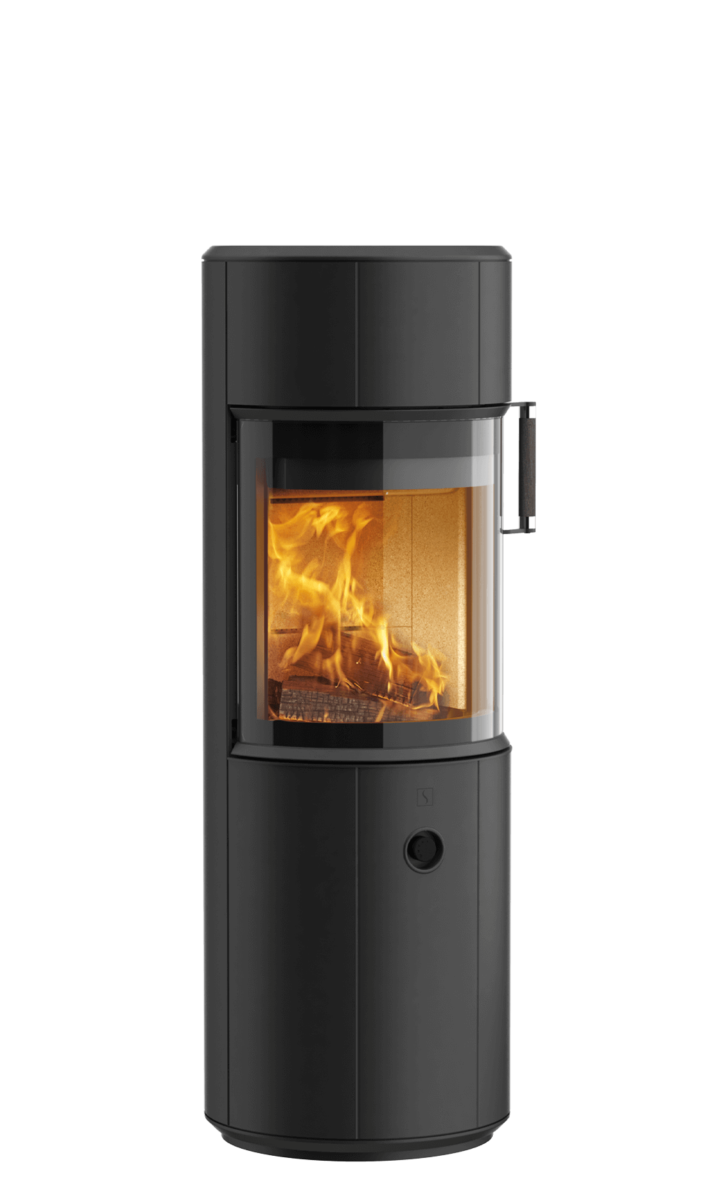 - Runder Kaminofen mit flacher Rückseite und dadurch geringem Platzbedarf