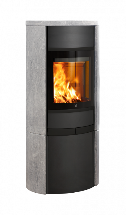 Dieses Modell hat Specksteinseiten und eine Deckplatte aus Speckstein. Lieferbar mit Griffen und Dekorleisten in Schwarz oder Aluminium.
