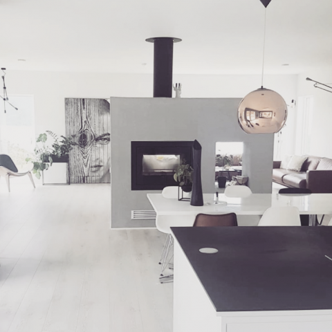 Ein Kaminofen kann einen großen Raum aufteilen, ein schöner Blickfang sein und Wärme und Gemütlichkeit gleichzeitig für zwei Milieus spenden. Wie wäre es mit einem Kaminofen, der mit dreiseitiger Verglasung die Sofaecke und das Esszimmer erleuchtet und einen hübschen Flammentanz gleichzeitig für Küche und Wohnzimmer sehen lässt?